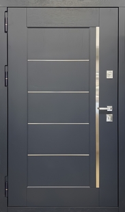 Металлическая дверь для квартиры с серыми панелями МДФ и молдинговыми вставками — идеальное решение для оформления жилых и коммерческих помещений. МДФ-панели придают двери солидный и завершённый внешний вид. Подчёркивают структуру и ритм архитектурных линий. Дизайн подойдет тем, кто выбирает стиль и функциональность.