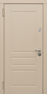 Входная дверь с окрашенными плитами МДФ (RAL 1015) сочетает в себе прочность и изысканный внешний вид. Панели из МДФ сочетаются с любыми архитектурными стилями — от классики до модерна. Подчёркивают контраст или плавность перехода между материалами. Отделка подойдет для домов с классическим и современным оформлением.