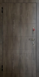 Завод «Клинский Дверник» изготовит входную дверь арт.КД-1330 с индивидуальной комплектацией. Базовая цена применима к изделию с типовыми размерами и отделкой. Конструкция основана на прочном металлическом каркасе, обеспечивающем высокую степень защиты. Лист металла толщиной от 1,5 мм обеспечивает прочность и взломостойкость. Петли усиленные, рассчитаны на многолетнюю нагрузку. Внутреннее наполнение — шумоизоляция 4 класса (до –37 дБ)в зависимости от условий эксплуатации: минвата, пенопласт, базальтовая плита, Rock Wool, Ursa. Контуры уплотнения предотвращают проникновение посторонних запахов и шума. Комплектация включает два надежных замка разного типа, глазок с широким углом обзора, ручки и противосъемные штыри, которые усиливают защиту от взлома.